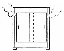 地震などで転倒しないよう、転倒防止の処置をしてください。備え付けに不備があると、