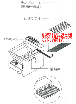 仕切りアミとサンプレートは紛失防止のためステンレス針金で結んで予めセットしてあります。むやみには捨てないでください。