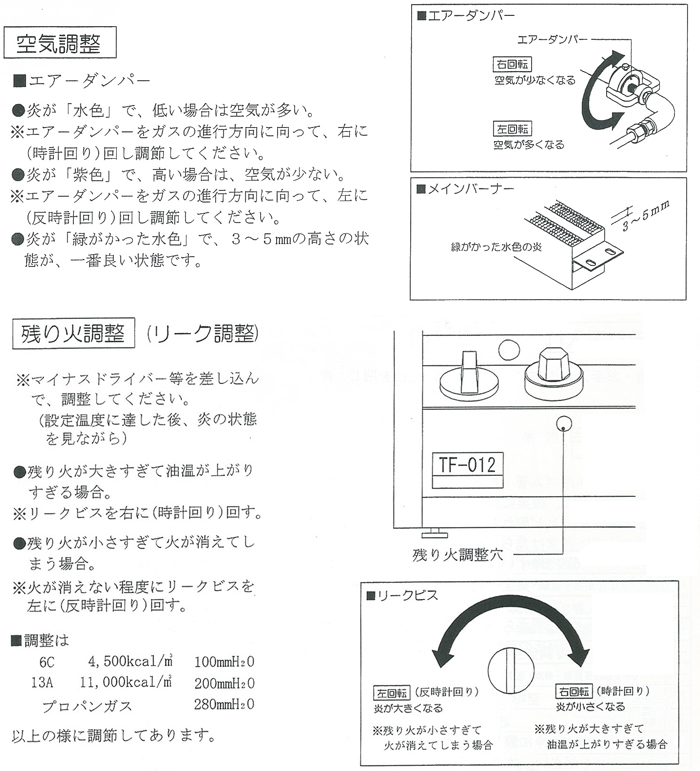 以下の「残り火調整」・「空気調節」は弊社にて調整をし、お届けいたします。
