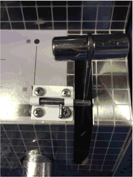 使用時は排油ハンドルが下がらないように、写真の様に安全装置のカギをしておいてください。